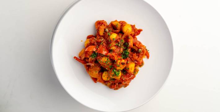 Discover how to make light ricotta gnocchi and pair it with Sicilian-style caponata, a mix of eggplant, tomatoes, and vegetables. The class covers shaping, cooking, and combining these two classic dishes. Additional food and drinks can be ordered from your server during the class.