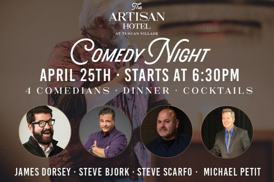 Get ready for a night of great food, drinks, and nonstop laughs at Comedy Night in the Ballroom at The Artisan Hotel.